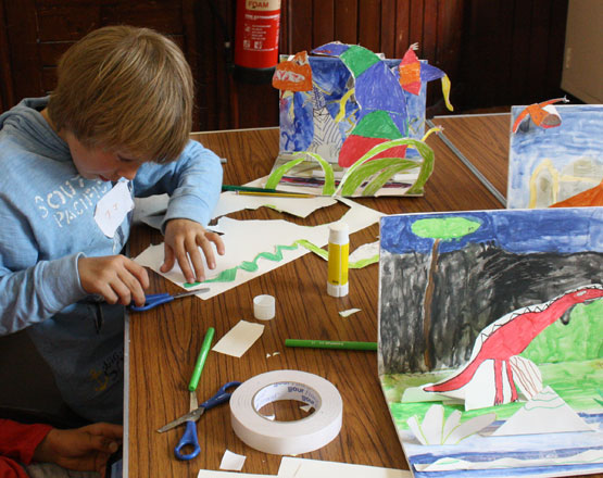 Gosh!…. children are sooo creative aren`t they! What a lovely day i`ve had making three-dimensional dinosaur worlds with some very creative children at the Chapel Gallery…..