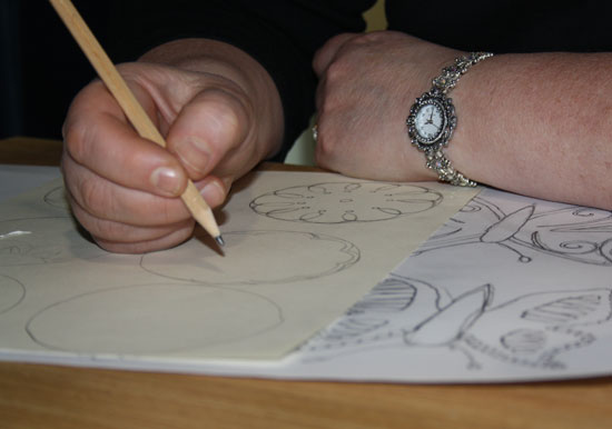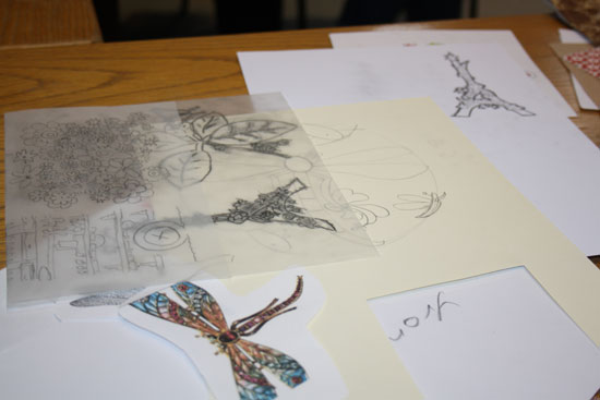 Another lovely session….everyone is starting to have lots and lots of ideas! We experimented and began creating our designs for a piece of jewellery. One lady brought in a top, so she could be inspired by the pattern…..